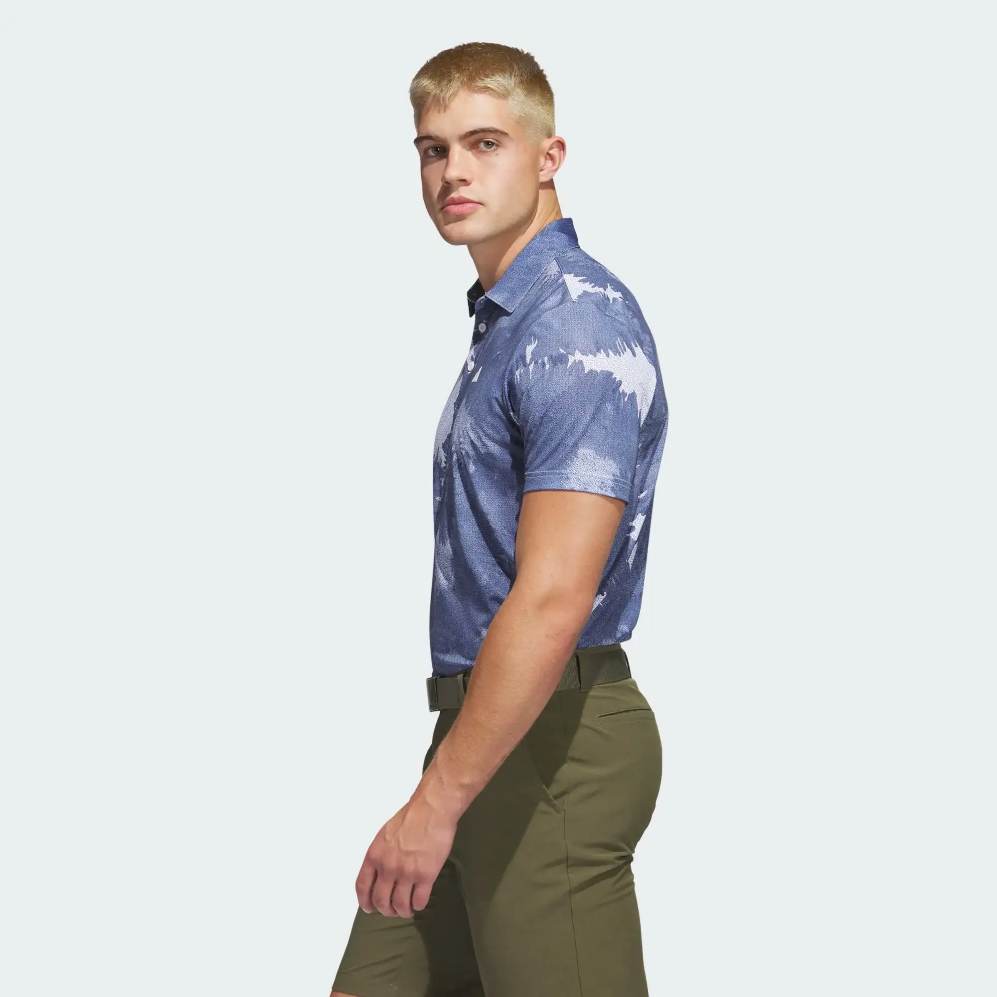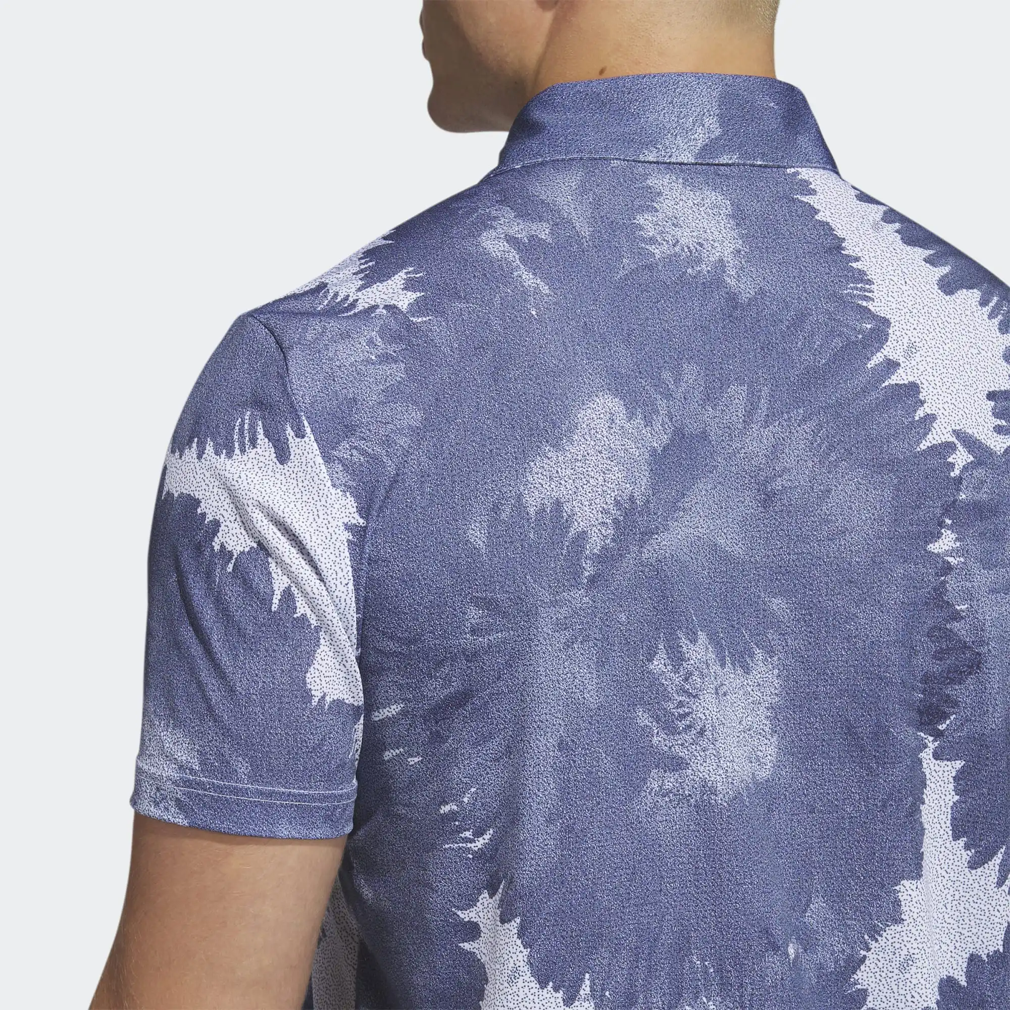 Move freely while you look your best in this adidas golf polo shirt. It’s made with a breathable four-way stretch fabric that moves with you so there’s no restrictions while you swing for a long-distance shot or a high-pressure putt. The allover print gives you a distinctive look.