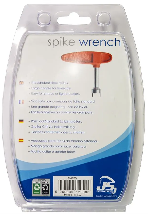 This is Longridge’s spike wrench tool. It is a standard size wrench with a steel handle for extra strength. Standard wrench for shoe spike removal